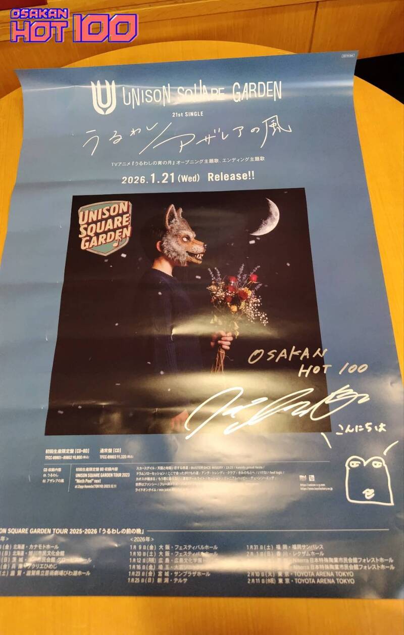 電話でチャートNo.1予想をして【 UNISON SQUARE GARDEN シングル『うるわし/アザレアの風』サイン入りポスター 】をゲット! #HOT802