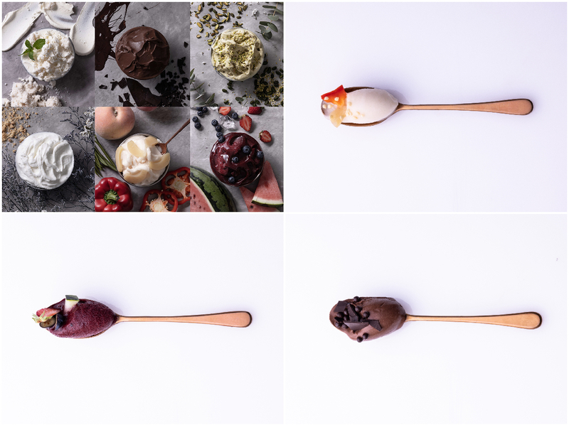 その柴野氏がジェラート国際大会で優勝し、世界一に輝いた受賞フレイバー「グランピスタチオ」をはじめ、旬のピーチを使用した「ピーチパプリカ」や「スイカと4種のフルーツ」、
