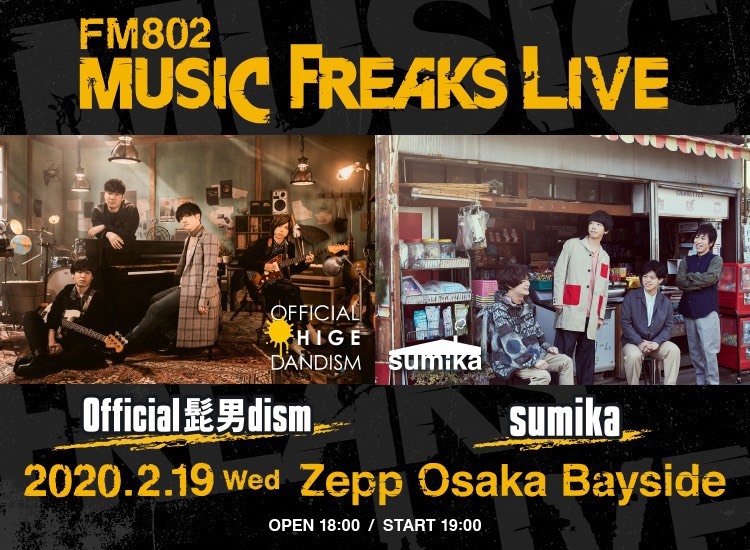 2/19(水)に行われる「FM802 MUSIC FREAKS LIVE」のチケット購入権をペア2組にプレゼント