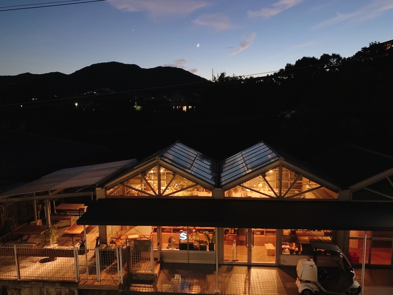 植木屋さんのサンルームをリノベーションし、1階にはテラス席もあります。