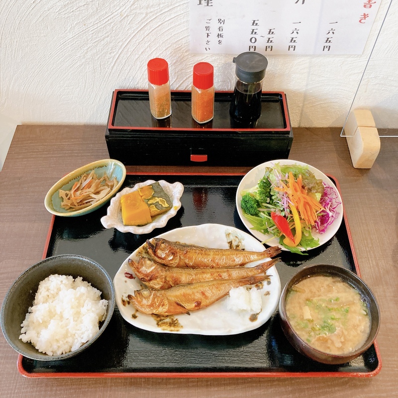 私は、ハタハタの塩焼き、きんぴらごぼう 、南瓜の煮付け、サラダ、