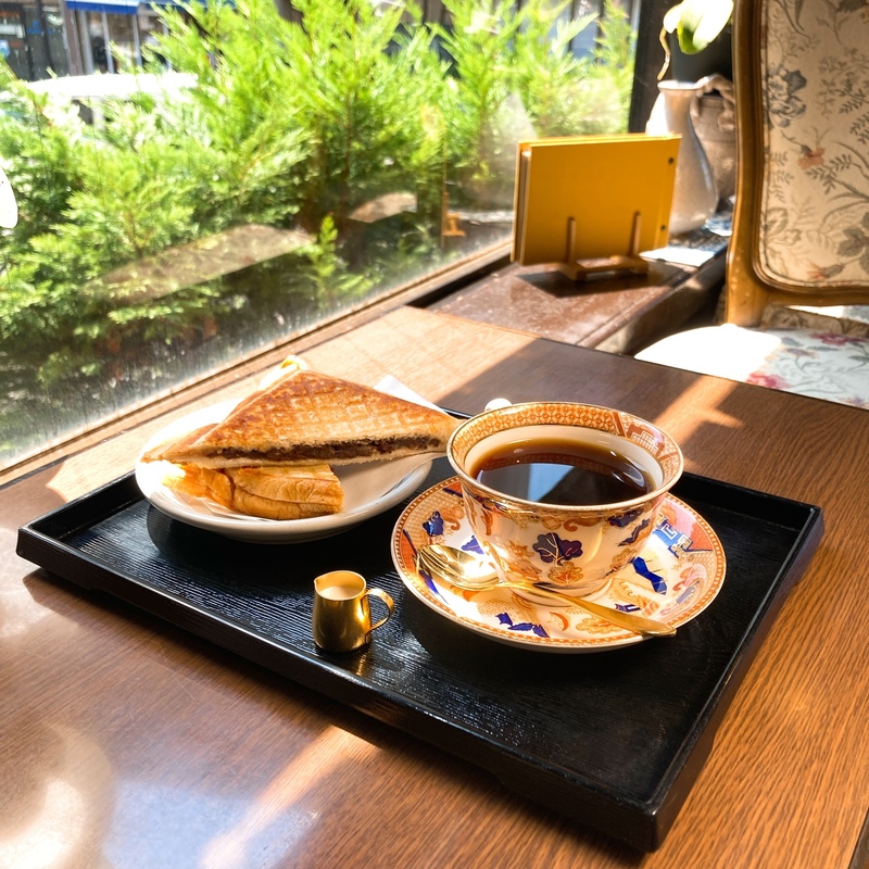 夙川にある、和菓子屋さん『菓一條』に併設されたサロンでいただく『小倉ホットサンド』