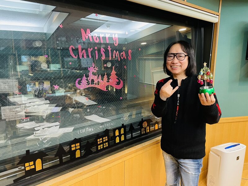 クリスマスの装飾でにぎやかなスタジオから生放送中の「ROCK ON」