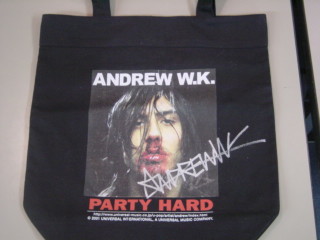 ANDREW W.K サイン入り鼻血ジャケのトートバッグ!