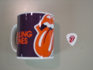 THE ROLLING STONESのロンウッドから貰ったギターピック(表)とマグカップ!