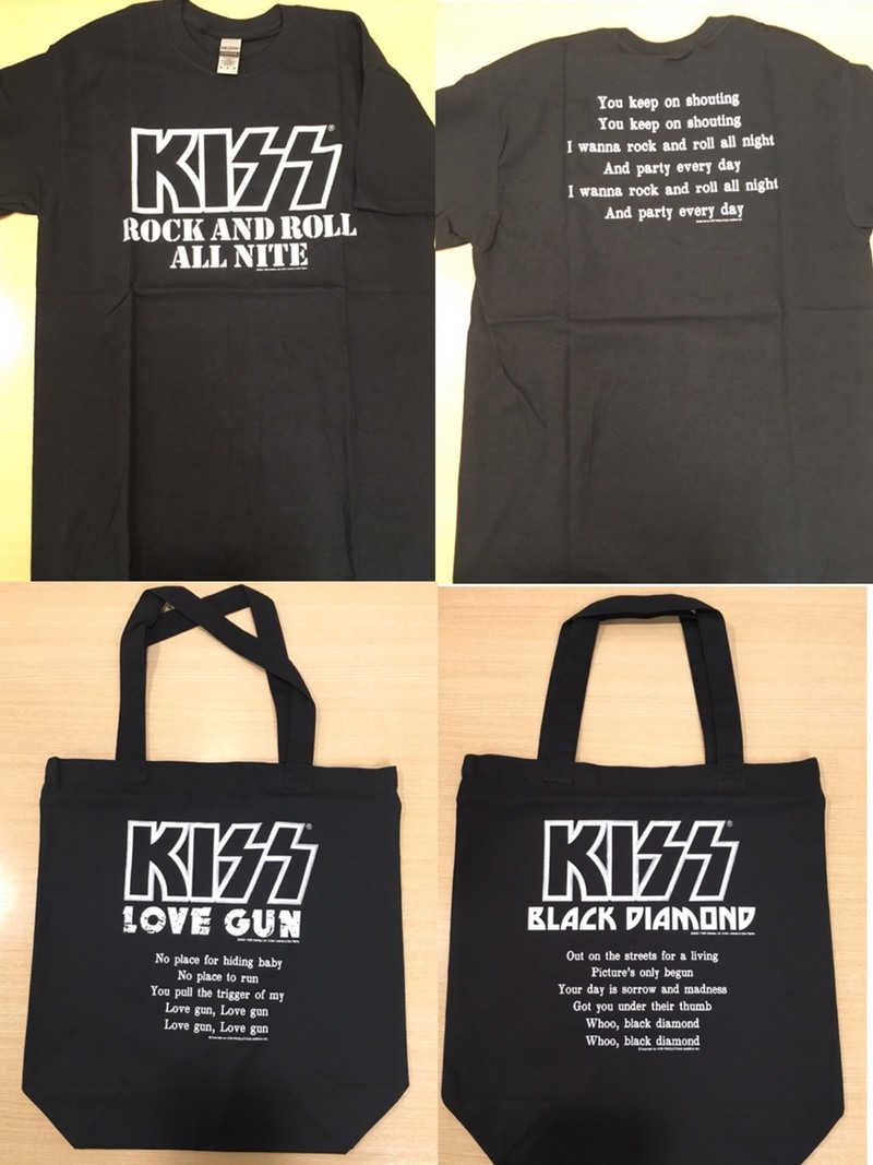 ▼KISSの人気曲から選りすぐりのナンバーの”歌詞”をプリントした新グッズから・・・
