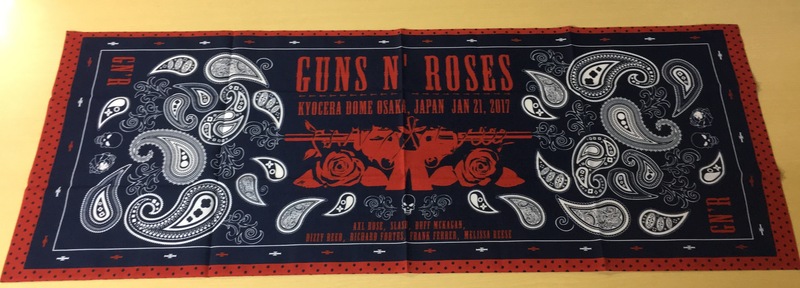 ガンズナンバーのリクエストたっぷりお届けに、この来日公演のために制作されたガンズのバンダナ柄てぬぐいをプレゼントします