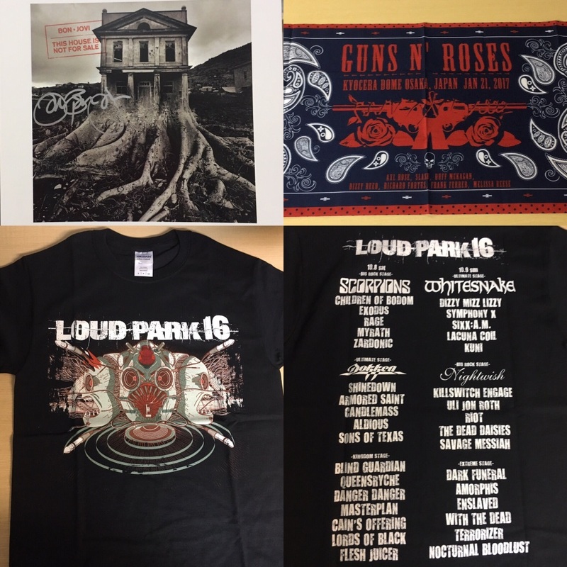 ジョン・ボン・ジョヴィのサイン入りBON JOVIポートレート+Tシャツ(M)