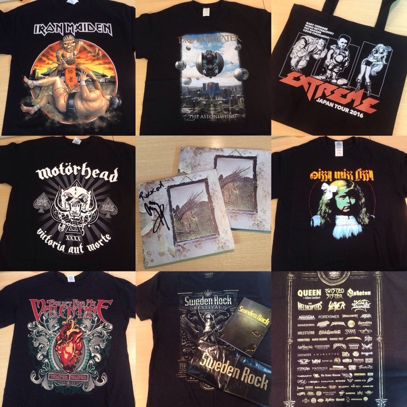 ▽先日開催された「Sweden Rock Festival2016」のTシャツ、パンフレット、ビニールバックのセット