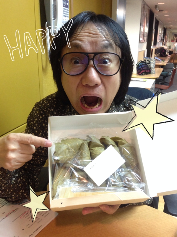 今夜のお夜食は、毎年恒例のとらやの柏餅を伊藤さんが予約して買ってきてくれました〜