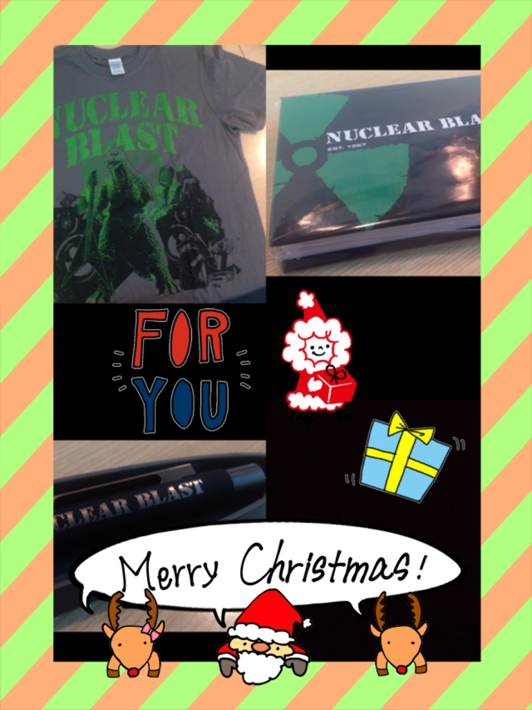 今夜のプレゼントは・・・レコード・レーベルNUCLEAR BLASTのTシャツ(Mサイズ)、ミニノート、ボールペンをセットにして1名にプレゼントします