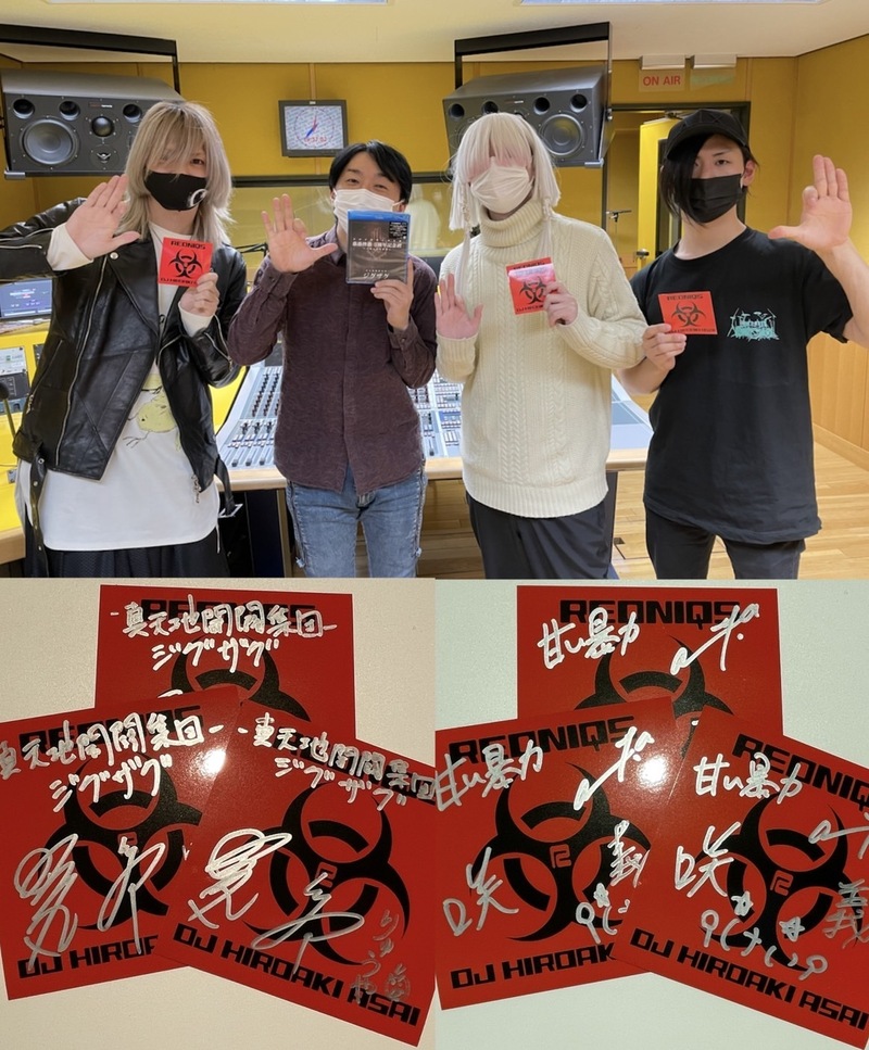 メンバー全員でのラジオインタビューが初という「-真天地開闢集団-ジグザグ」「甘い暴力」の2組をお迎えしてお送りしました〜。どちらもメンバーの意外な一面がみられたのでは?暴走がすごかった(笑)