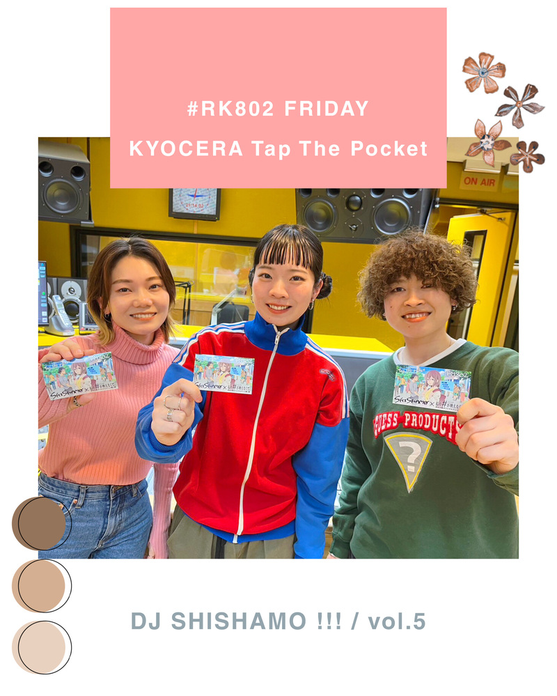 #RK802 FRI "京セラ Tap The Pocket" vol.5 !!! 《 まもなく SHISHAMO 登場 !! 新曲解禁 & サイン入りプレゼントも 》
