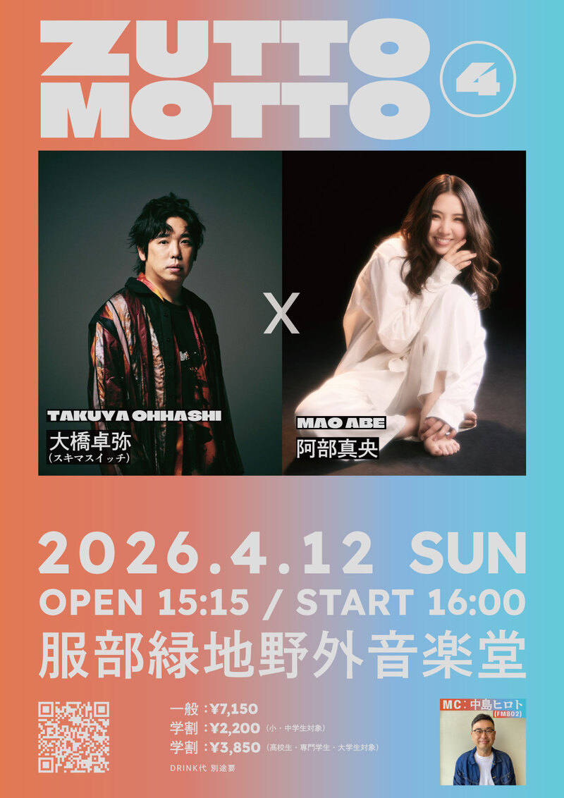 | 会場/開場・開演 | 服部緑地野外音楽堂 OPEN=15:15 START=16:00 |
