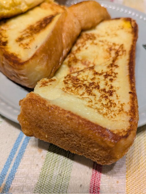 こんがり焼き色のついたフレンチトースト、